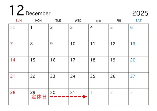 【年末年始公休通知】